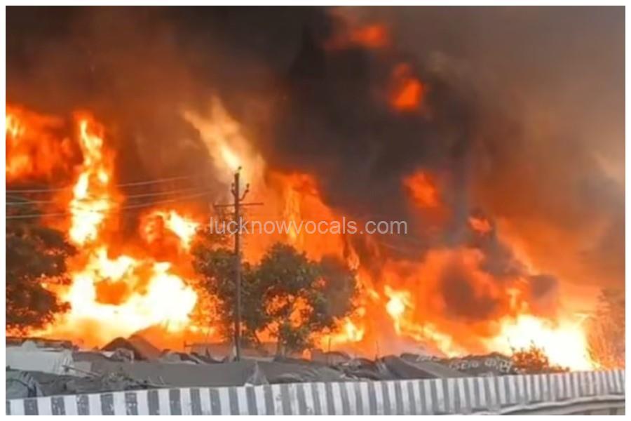 लखनऊ के विकासनगर की झुग्गियों में भीषण आग: 300 झोपड़ियां जलकर राख, हादसे में दो मासूम बहनों की मौत