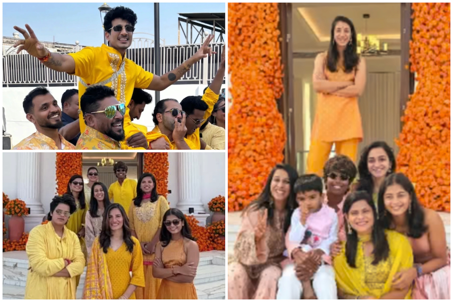 हल्दी समारोह का पूरा माहौल येलो थीम में रंगा हुआ था। स्मृति मंधाना के साथ शफाली वर्मा, रिचा घोष, श्रेयंका पाटिल, रेनुका सिंह, शिवालीशिंदे, राधा यादव और जेमिमा ने येलो आउटफिट्स पहने और बेहद खूबसूरत नजर आईं। समारोह की तस्वीरें और वीडियोज सोशल मीडिया पर तेजीसे वायरल हो रही हैं, जिसमें स्मृति और पलाश के चेहरे पर खुशी साफ नजर आ रही है।