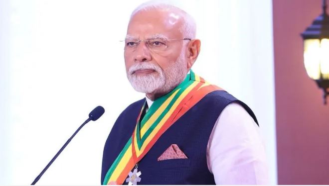 प्रधानमंत्री मोदी को घाना की ओर से ‘द ऑफिसर ऑफ द ऑर्डर ऑफ द स्टार ऑफ घाना’ से सम्मानित किया गया। उन्होंने इस सम्मान के लिए घाना के राष्ट्रपति, सरकार और जनता का आभार व्यक्त किया। मोदी ने कहा कि यह सम्मान वे 1.4 अरब भारतीयों की ओर से स्वीकार करते हैं और इसे भारतीय युवाओं, सांस्कृतिक विरासत और भारत-घाना के ऐतिहासिक संबंधों को समर्पित करते हैं।