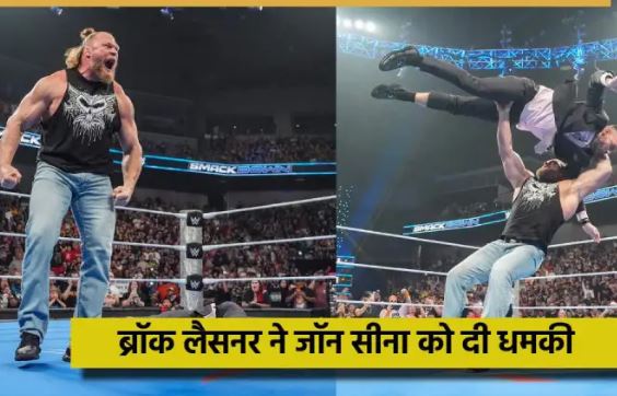 ब्रॉक लैसनर ने कैमरे की ओर देखकर जॉन सीना को खुली चुनौती दी। उन्होंने कहा,