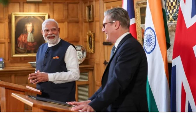 प्रधानमंत्री नरेंद्र मोदी और ब्रिटेन के प्रधानमंत्री कीर स्टारमर के बीच 24 जुलाई 2025 को लंदन में हुई मुलाकात ने भारत-ब्रिटेन संबंधों की दिशा को नया आयाम दिया। यह दौरा न सिर्फ राजनीतिक दृष्टिकोण से अहम रहा, बल्कि इससे दोनों देशों के बीच आपसी समझ, सहयोग और सामरिक साझेदारी का एक नया संदेश भी दुनिया को मिला।